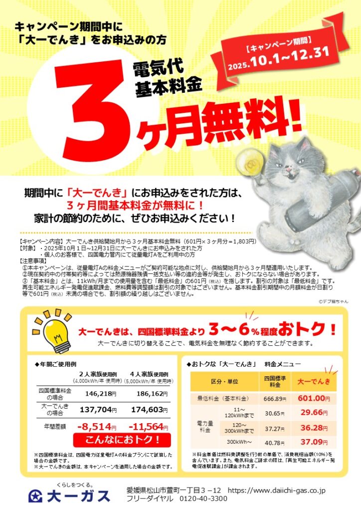 ・2025年10月1日~12月31日に大一でんきにお申込みをされた方